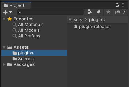 이제 유니티의 plugins 폴더에 classes.jar 파일이나 plugin-release.aar 파일을 복붙한다.