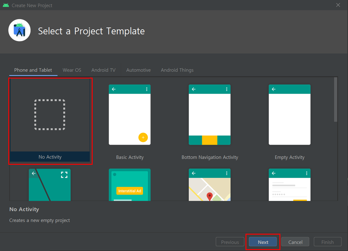 - 어차피 새 모듈을 추가할 것이므로 Template은 아무거나 선택한다.